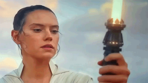 Second, Rey is asked for her last name by the old woman in the desert of Tatooine by the old home of Owen Lars, Luke’s home. After seeing Luke and Leia’s Force ghosts, Rey replies “Skywalker”. Then she ignites her yellow lightsaber.